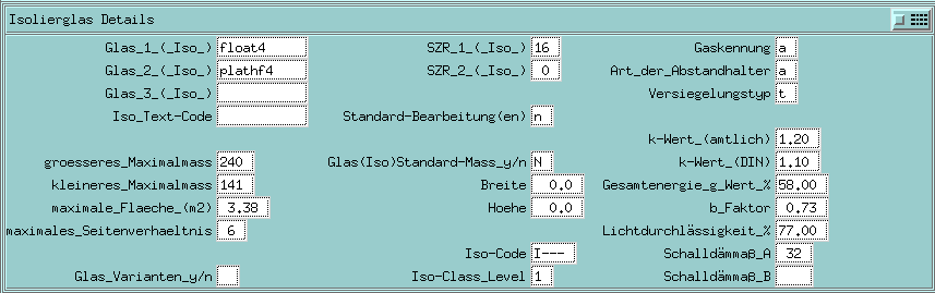 In einer zusätzlich aktivierbaren Sondermaske werden die für Isolierglasartikel zusätzliche Angaben verwaltet.