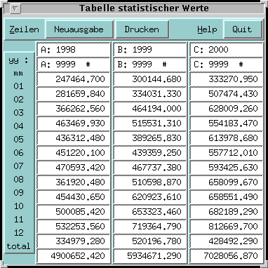 Die nachfolgende tabellarische Darstellung zeigt die oben selektierten und grafisch dargestellten Daten in numerischer Form.