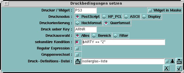 Oft ist es erwünscht nicht alle Datensätze einer Datenbanktabelle zu drucken, sondern nur solche die einem bestimmten Kriterium entsprechen oder in einem speziellen Bereich eines Key's liegen.