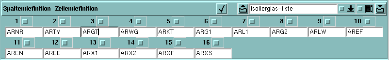 Typisch werden die Spalten einer Liste über die gewünschten Felder der jeweiligen Datenbanktabelle definiert. Mittels spezieller Eintragungen in den Spalten-Definitionen läßt sich ferner ein Rückgriff auf andere Datenbanktabellen und deren Felder realisieren (dazu müssen die Verknüpfungen der Tabellen über ihre Key's bekannt sein).