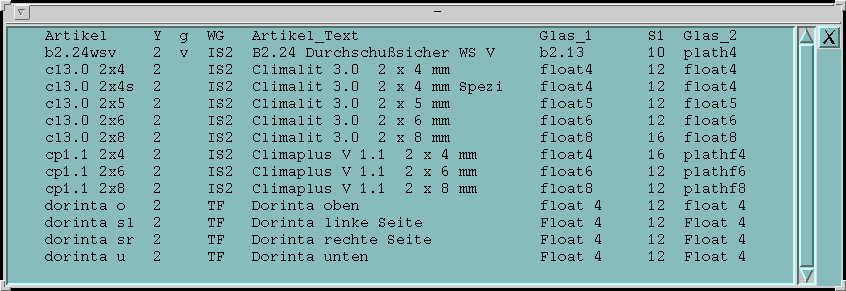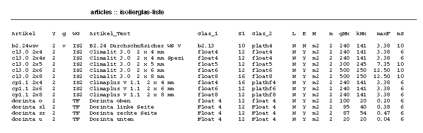 Z.B. könnte eine Liste über nur alle Isolierglas-Artikel definiert werden, indem eine Kondition "nur Artikel vom Typ 2" aktiviert wird.
