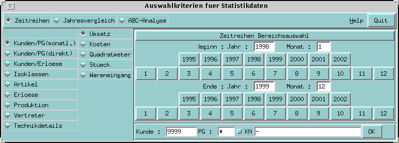 · den zu betrachtenden Objekt -Key (hier die Kunden-Nr 9999 über alle Produktionsgruppen (definiert durch das Symbol #))