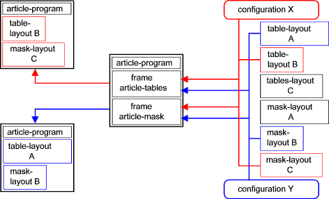 By specifying names for masks and/or tables within the configuration, these frames are filled with spezial views.