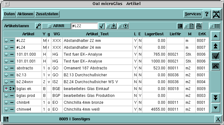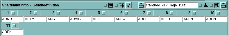 Die Anordnungs-Raster (auch "Tabellen-Layouts") erhalten einen Namen, der typisch den Anwendungszweck dieser Tabelle benennt. In einem Anwendungssystem können nebeneinander unterschiedlich benannte Tabellen existieren und bei Bedarf aktiviert werden (siehe Programme und Konfiguration).